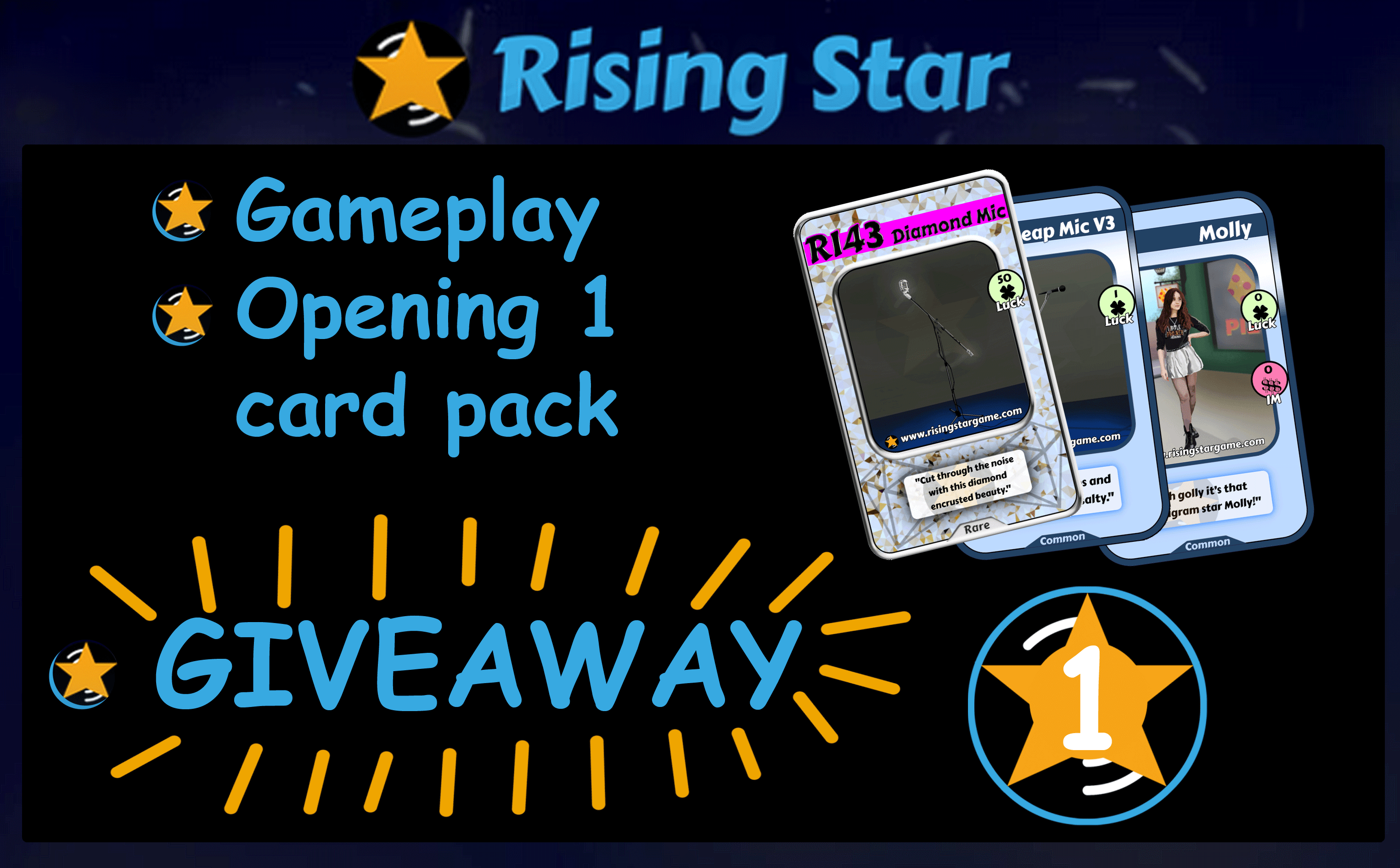 Saludos, compañeros de Risingstar. En esta ocasión les traigo un video distinto, en el que compartiré con ustedes mis ratos jugando el juego; además, abriré un pack de cartas y al final del video estaré dando las indicaciones para participar en un Giveaway de 2000 starbits para un usuario y dos cartas comunes para otro usuario participante; en total, dos ganadores.