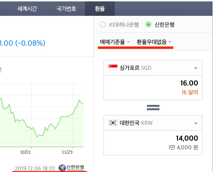 그런데 MCO 카드에 충전된 SGD를 통해 한국에서 KRW로 물건을 구매하는 것은 내가 보유한 SGD를 팔아 KRW를 사고 그 돈을 상인에게(서브웨이) 지불하는 것이므로 SGD 를 "현찰 팔때" 기준으로 그리고 90%의 환율우대를 늘 받는다 가정하고 적용해보면 조건이 좋은 신한은행 기준으로 SGD로 KRW물건 구매시 0.37% 정도 불리해보입니다. 이 경우엔 2% 캐시백 카드 기준으로 1.25%뿐이 못받는 상황이 되는 것 같습니다.