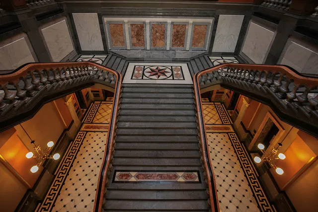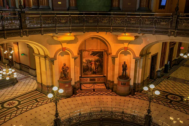5: A equestrian painting of George Washington adorns the second floor rotunda. It was donated to the state capitol in the early 1970s.