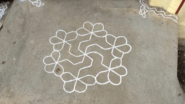 There are "Kolam"s drawn permanently (with paint) in front of some houses, which is are normally drawn fresh every day with rice flour otherwise.