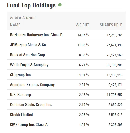 The Financial Select Sector SPDR® Fund (XLF) seeks to provide precise exposure to companies in the diversified financial services; insurance; banks; capital markets; mortgage real estate investment trusts ("REITs"); consumer finance; and thrifts and mortgage finance industries. The top holdings include: