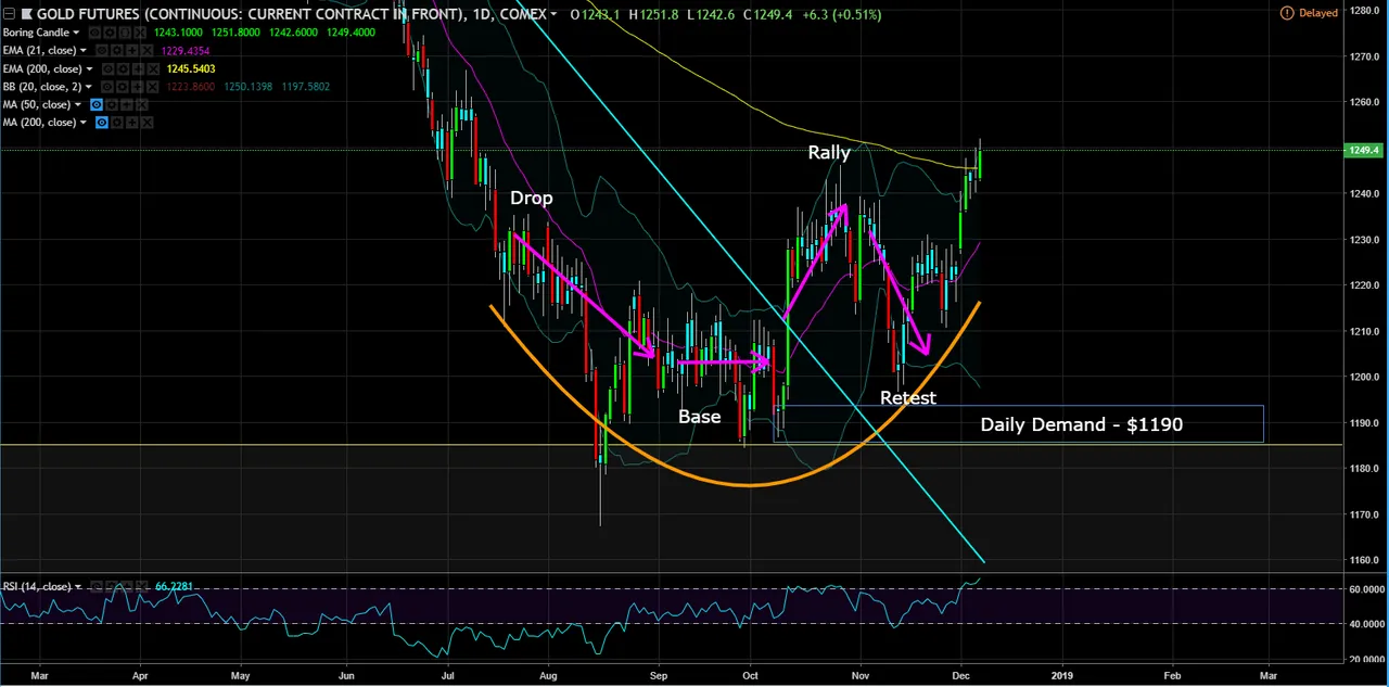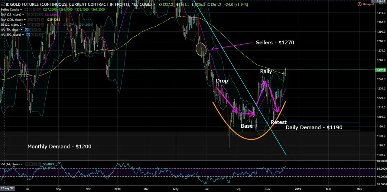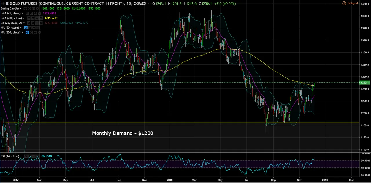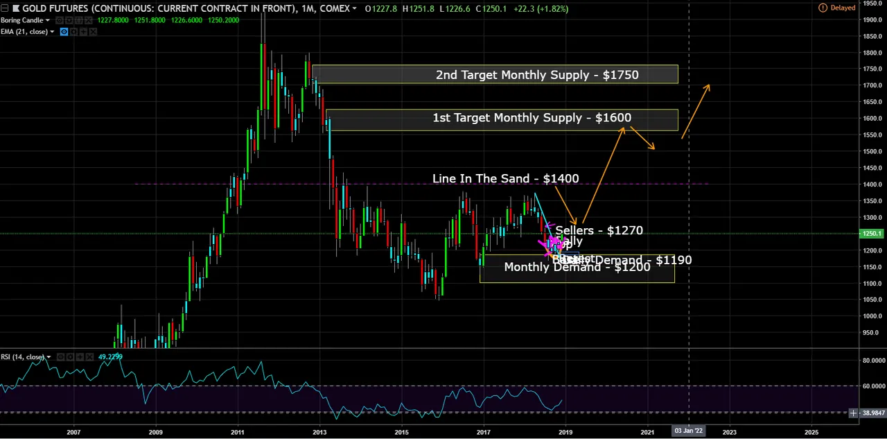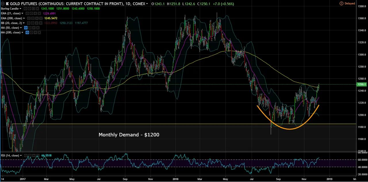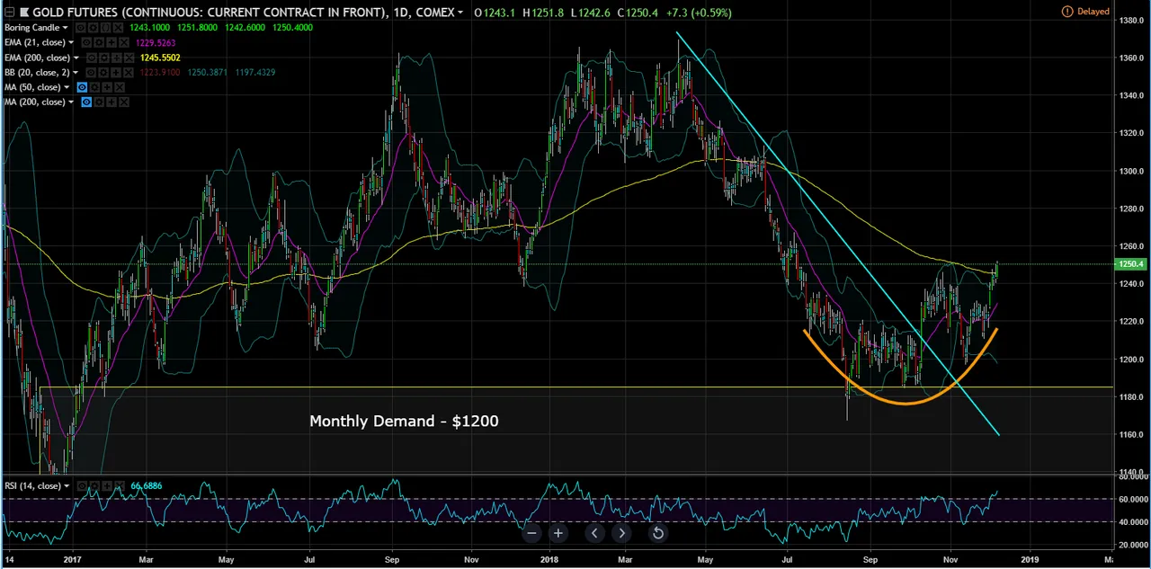 Fed Chair Jerome Powell said in a speech a couple of weeks ago was that U.S. interest rates were now “just below” the level that could be considered neutral. This signaled to the Markets that the Fed would stop raising rates sooner than later. Before the Feds think interest rates are at neutral, the US dollar should sell-off as investors will look for alternative assets with a higher yield. Because the US dollar and Gold are inverse correlated, I anticipate Gold moving higher. In addition, when the Markets fill the Equity Markets are finally ready to sell-off definitely, Gold should benefit because it’s see as a safe haven.