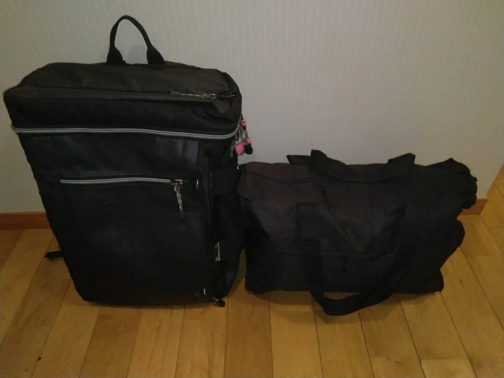 リュックとバッグ。今回はLCCなので機内持ち込みできるサイズと重量にしています。タイだと上着があまりいらないのでこの位でも大丈夫そうですね。