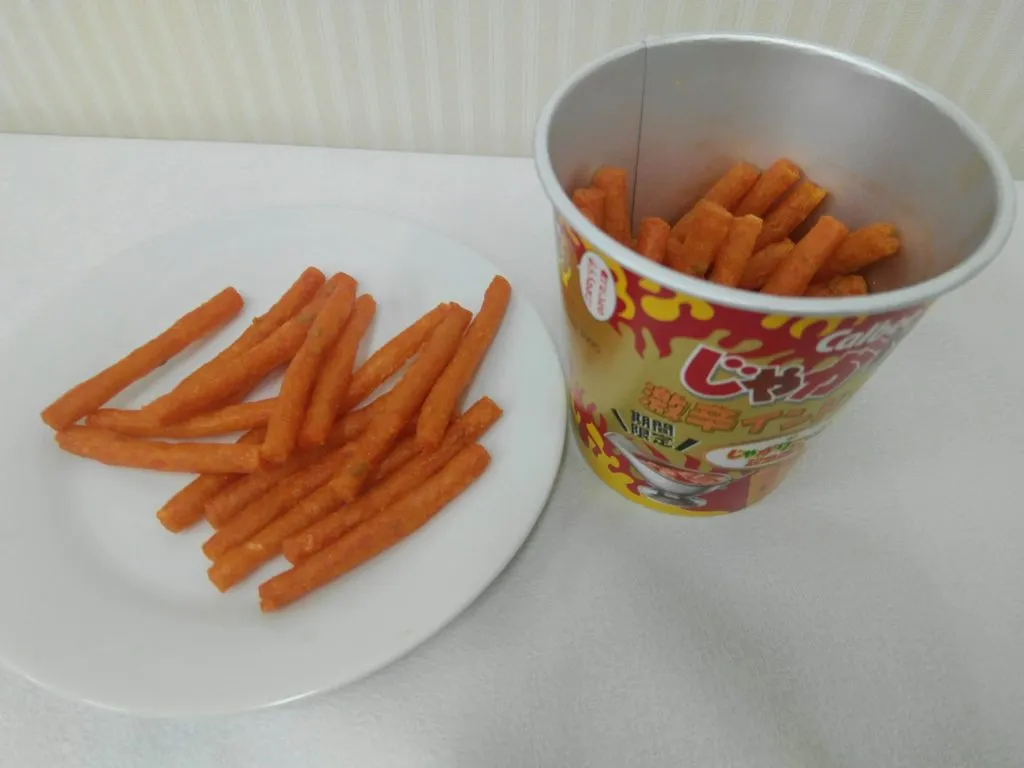 ツイッターでも辛さで評判になっていました。 早速食べてみると別に辛くなくてカレー味の美味しいじゃがりこだなと思っていたのですが、噛んでるうちにめっちゃ辛くなってきます。しかし、おいしいので止まらない、辛い、うまいの繰り返しです。思っているよりも辛いので飲み物が必須のじゃがりこでした。