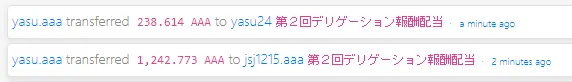AAAトークンをデリゲーションしてくださっている方に、AAAトークンを配当します。