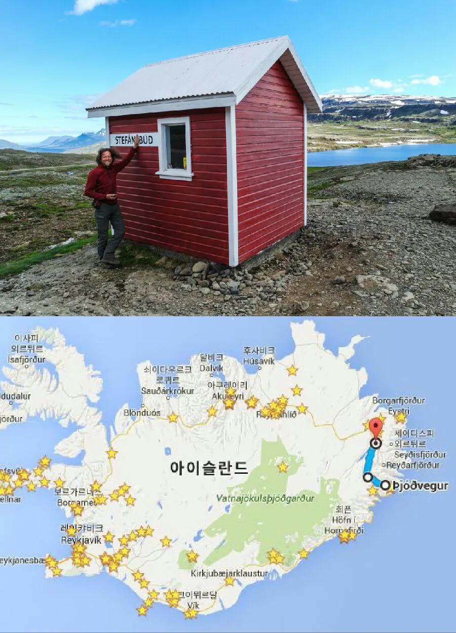 - 히치하이킹 나름 많이 했는데, 이렇게 포기할 수 없지. 그런데 문제는 지나가는 차가 정말 없었다. 나는 이 때, "보물은 남들이 잘 가지 않는 곳에 있다" 라고 1000번은 되네였던 것 같다. 차를 태워주신 노부부께서 엘프들의 호수라 불리는 Stororð를 소개해주셨다.