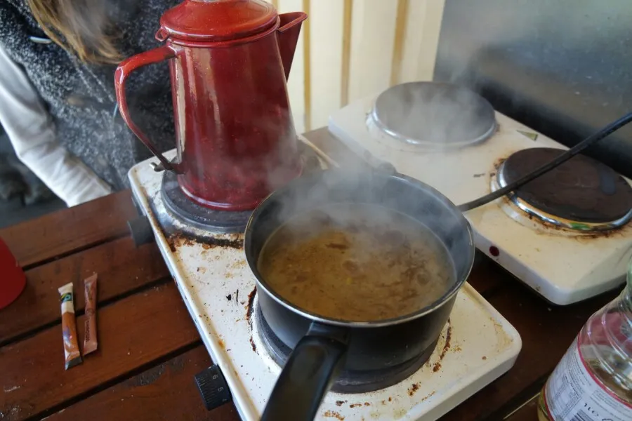 - I come to the camping ground and boil coffee and soup. Later, they went to the swimming pool to take a shower and I stopped by Netto, a large mart to eat breakfast.