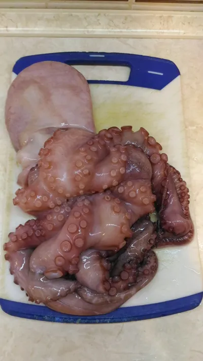 일단 서비스로 문어님을 깨끗히 목욕시켜드린 후, 제가 먹기 좋은 크기로 몸을 나눠드리겠습니다. "이거 너무 살벌하게 가는 거 아닌가.."