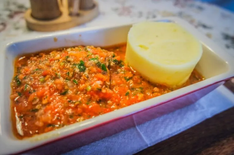 물가도 저렴하겠다... 몰도바 음식을 본격 탐방해봐야죠!! 이 음식의 가격은 3유로 정도 했던 것 같고, 미트볼과 감자퓌레였는데. 어떤 소스인 건지, 처음 느껴보는 맛이었어요. 색달랐던 맛. 맛도 좋았고요!!