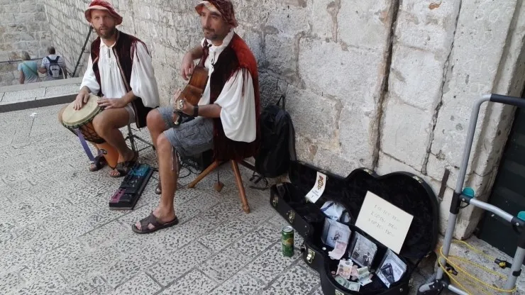 성 입구 쪽에서 들리기 시작하는 가느다란 음악소리, 그 앞에서 춤을 추는 안무가들. 기타와 북을 치는 2인조 버스킹 그룹 'The Fortress'를 만나게 되었다. 중세 시대의 두브로브니크가 음악 속에 담긴 것 같이 느껴지는 연주는 많은 이들의 귀를 사로 잡았다. 제게는 단연 이제까지 본 버스킹 그룹 중에서 최고....!