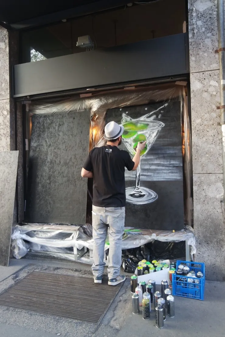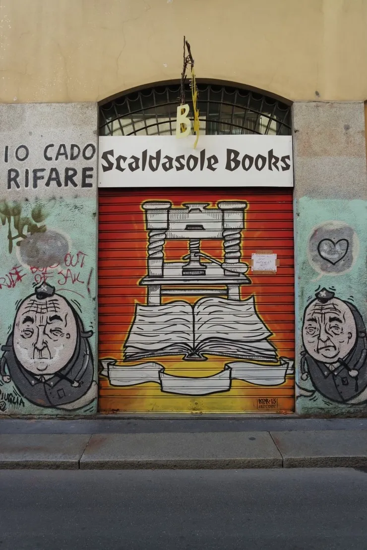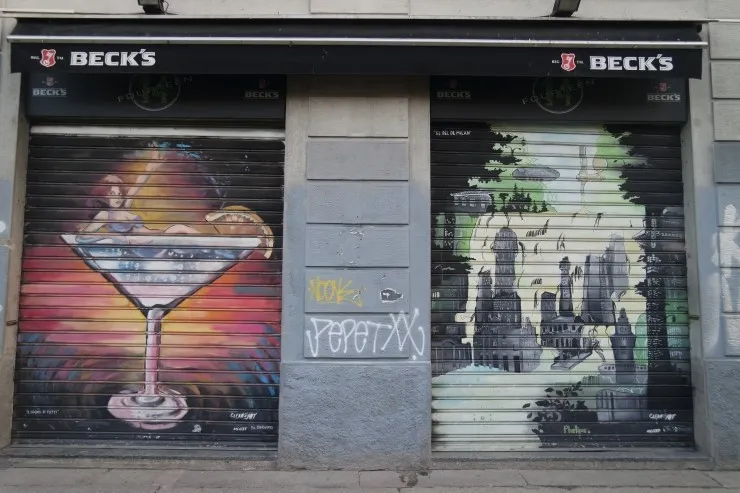 르바의 퀴즈 카페에 참여하신 분들은 이전에 제가 설명했던 적이 있어서 아실텐데요. 밀라노의 특별한 매력 중 하나는 가게의 철제 셔터 위에 그들의 업종과 관련된 그래피티를 그려 넣었다는 것이에요. 거의 모든 가게가 모두 그렇게 했다는 것이 매력이죠!! 다른 나라 어느 도시를 여행해도 이런 특색은 찾아볼 수 없습니다.