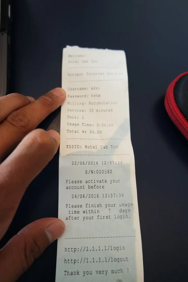 wifi가 30분에 25크로네(4유로), 1시간에 50크로네(8유로). 엄청 싸네요!!!