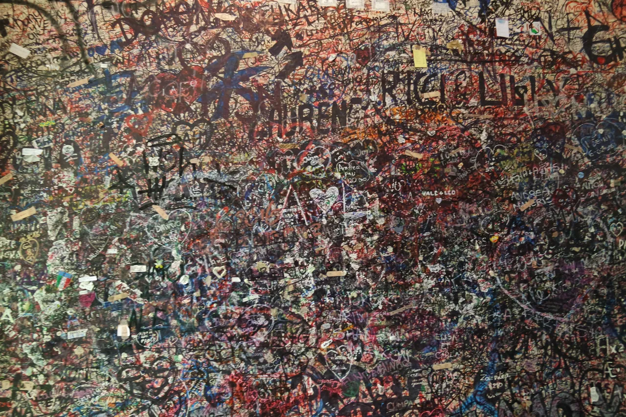 줄리엣의 집으로 향하는 입구 벽면에는 방문객들이 남긴 수많은 사인과 메모로 인해 예술 작품 같아 보였습니다.