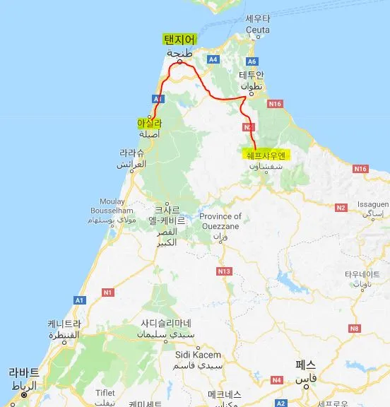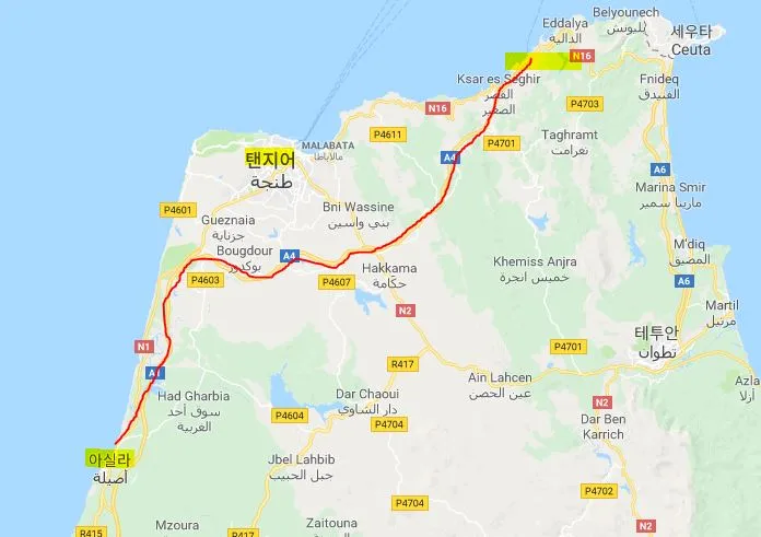 위의 구글 맵을 보시면 탠지어라는 도시가 있고,