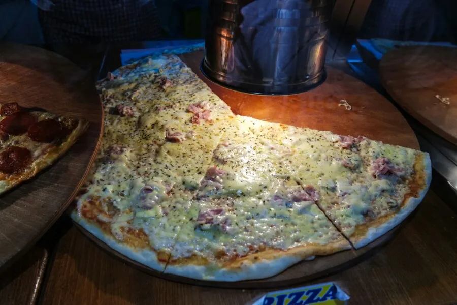 햄과 치즈, 야채 그리고 약간의 크림소스로 만들어졌고, 이탈리아 피자처럼 너무 짜지도 않는데, 풍미가 있었어요. 부드바 구 시가지 성곽 안 쪽에 위치한 작은 피자가게에서 입니다. 아~ 다시 가서 또 먹고 싶네요~~