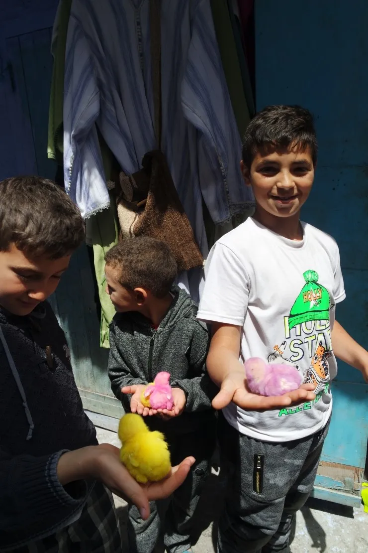 길에서 마주친 천진난만한 아이들은 탈색과 염색으로 헤어스타일을 한껏 뽐내는 병아리를 들고 다니고 있었어요. 그리고 저희와 눈이 마주치자 병아리 올려 놓은 두 손을 우리에게 내밀어 보이는 아이들. 저도 어릴 적에 병아리 한 번 사서 키워보고 그랬는데요. ㅎㅎ 잘 키우는 친구들은 집에서 닭까지 키우더라고요.