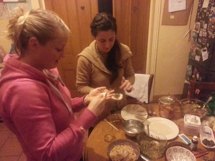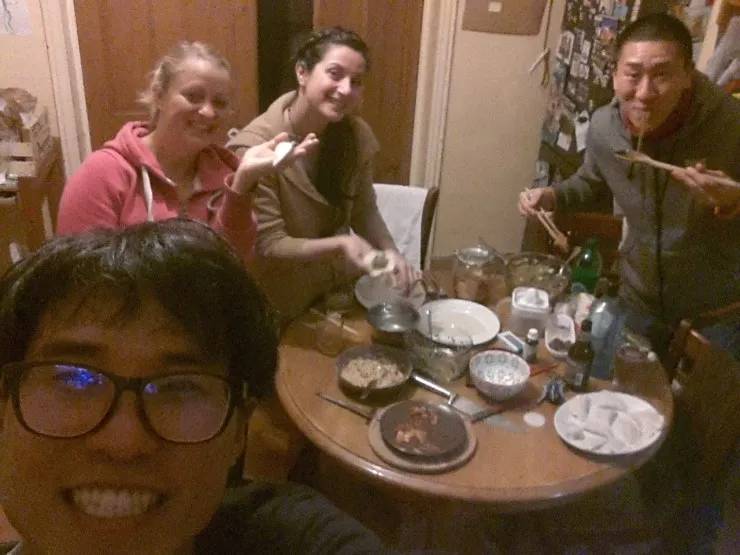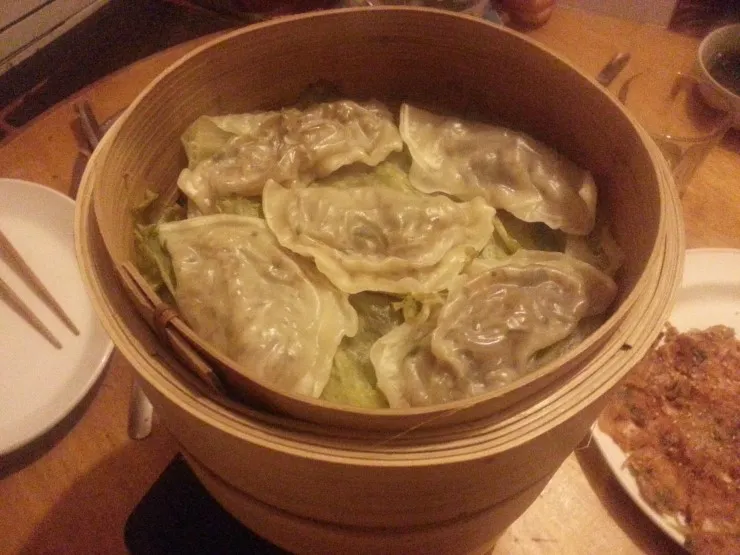 호스트 에바와 다른 플랫메이트에게 만두를 만드는 법을 가르쳐줬어요.