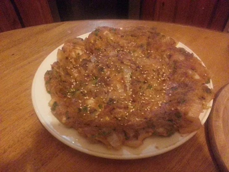 저는 만두와 잡채를 준비했고요. 그들은 김치 부침개 캬아~~