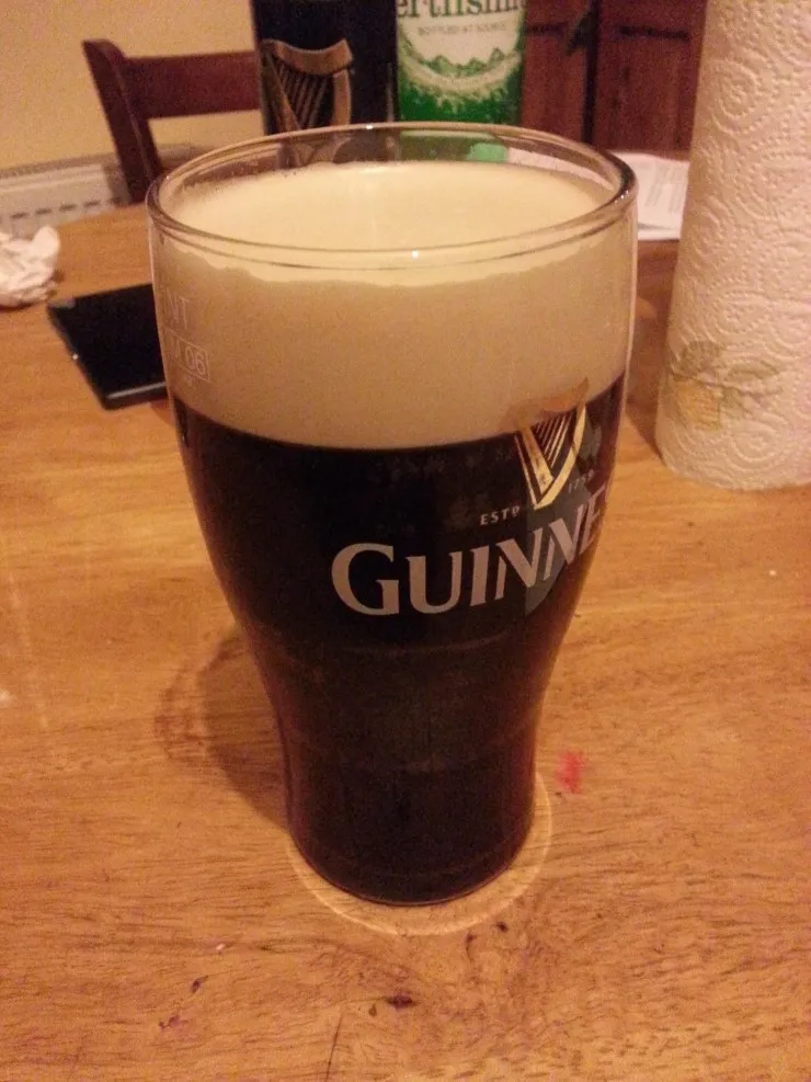 그 거품층이 위에 자리 잡을 때까지 기다리면, 갈색을 띄던 기네스가 검은색으로 변하게 됩니다. 이렇게 마시면 더 맛있다고 하네요 ㅎㅎㅎㅎ