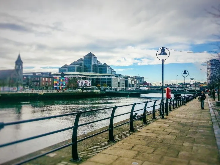 더블린을 가로 지르는 강변을 따라 놓여진 도보를 걸었습니다. 반대편 쪽에는 피라미드 형태를 띈 건물이 보이는군요. 아일랜드도 영국처럼 도시 자전거 시스템이 발달해 있습니다.