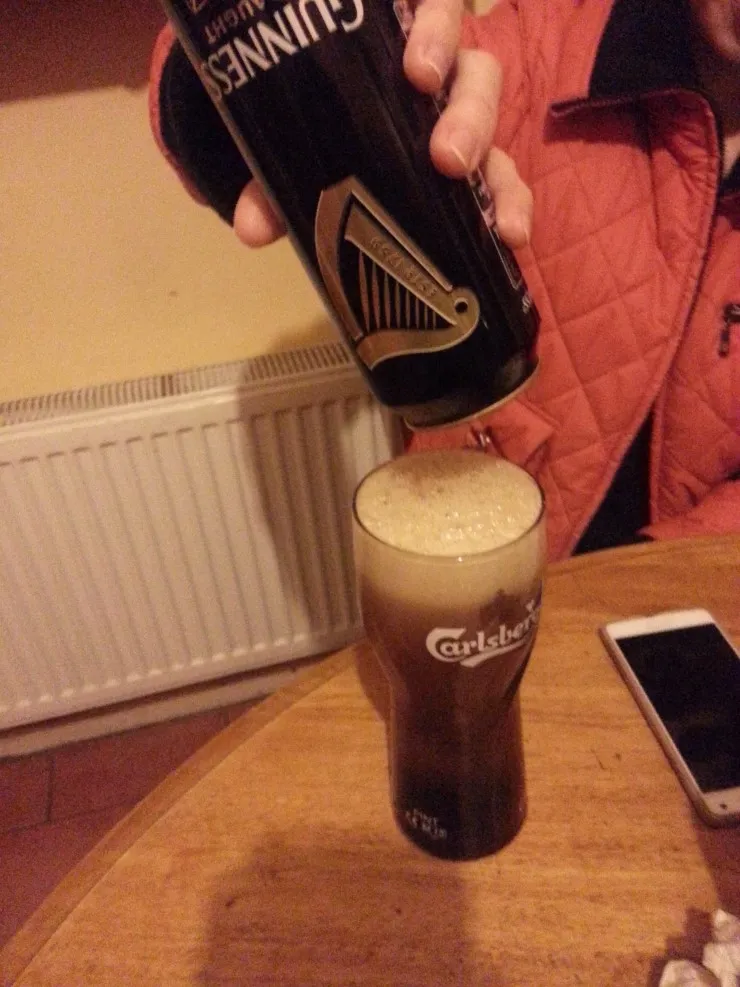 기네스는 캔을 따고서는 잔에 일자로 수직으로 세워서 따릅니다. 그럼 맥주가 콸콸 잔에 채워지며 거품이 봐글봐글 생기겠죠?