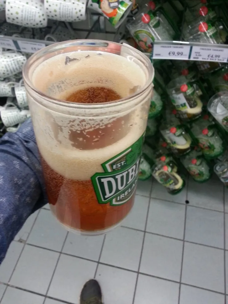 아일랜드에서 볼 수 있는 특이한 맥주 잔입니다. 마치 맥주가 차 있는 것 같은데, 2중으로 만들어진 잔이고, 안 쪽은 비어 있던 컵이었습니다. 꼭 맥주가 잔에 채워져 있는 것처럼 보여요 :D