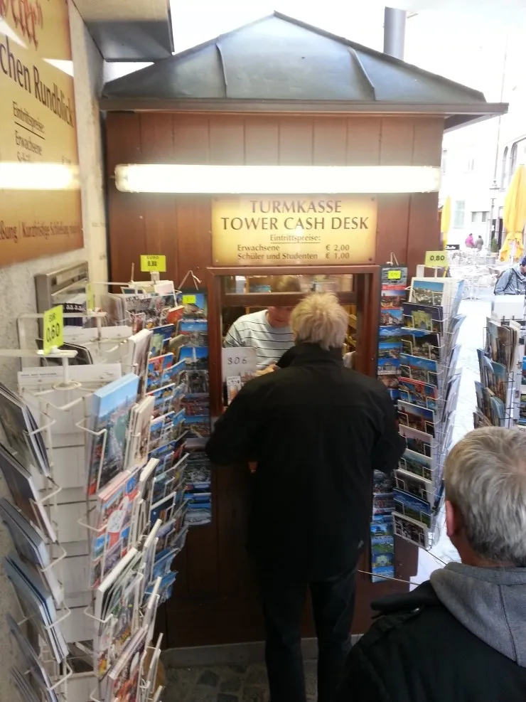 친구들이 뮌휀을 보여주겠다며 저를 데리고 시내로 나갔는데요. 종탑 위로 가자며 입장권을 사들고 오는 그들이에요. 계단을 다리가 아플 때까지 쭉쭉 계속 올라가면