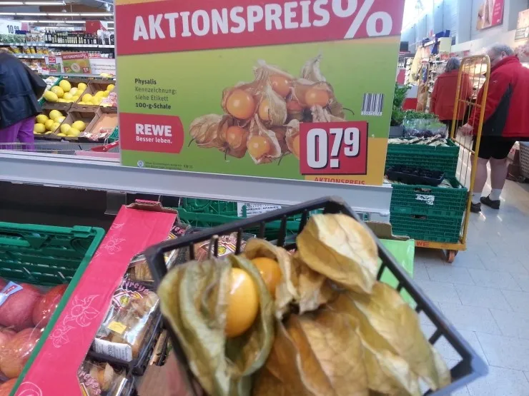 저 한 통에 20개 정도 들었는데 0.79 유로라니.. 한개당 20원 정도 하는 셈이군요. 낑깡? 살구? 이런 것도 생각해봤는데, 처음 보는 종류의 과일이었어요. 우리나라에서는 없는 것 같은데요. 유럽에서 가끔 보이는 과일입니다.(독일, 덴마크)