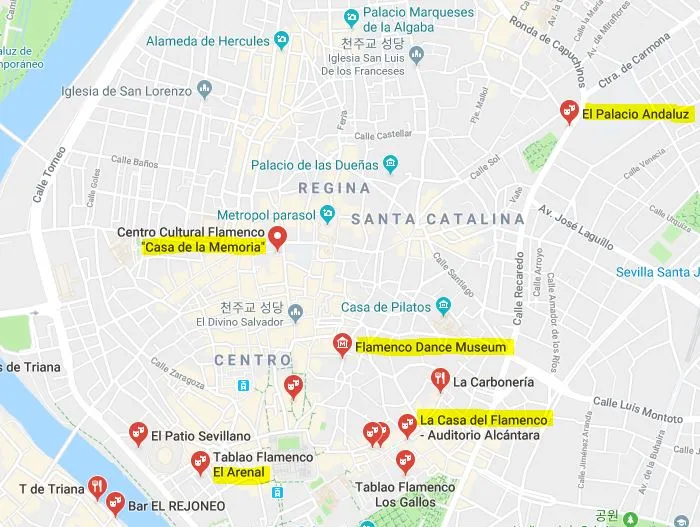 먼저 세비야 플라멩코 공연장들 위치입니다.