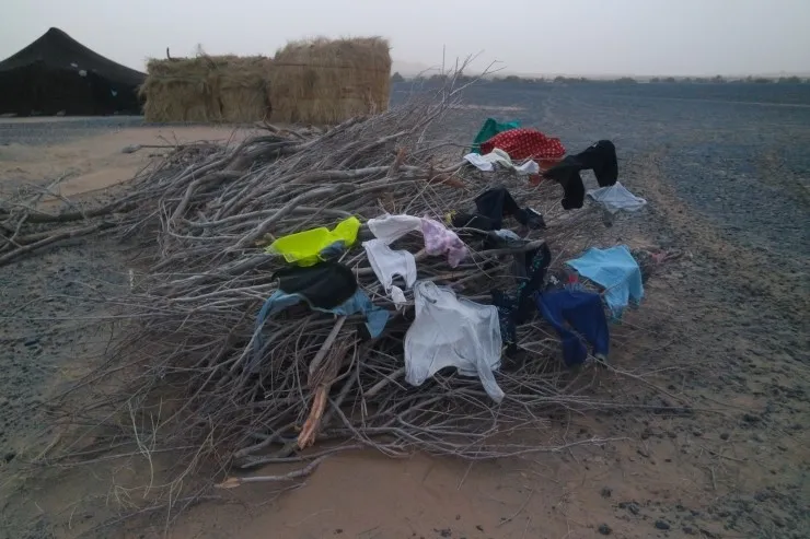 사막에서 사는 가족은 대부분 이렇게 투어를 통해 찾아오는 관광객들에게 차를 끓여주고, 어떻게 사는 지 생활 모습을 보여주면서, 투어를 진행하는 측으로부터 일부 돈을 받아 생활을 한다네요. 위의 사진은 빨래대?!에요. 물이 없으니 빨래를 어디서 하지는 않고, 햇볕에 바짝 말리는 것 같아요. 그렇게 나무 위에 말리는 거에요. 그리고 화장실은 아무데나 다 쓴다고 하시더라고요 ㅎㅎ