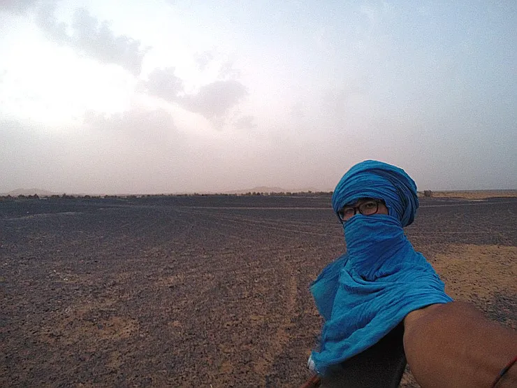 호스트가 별로 안 추울 것이라고 했지만!!! 밤이 되니까 진짜 엄청나게 추워졌어요..ㅋㅋㅋ 그래서 호스트의 파란 천을 빼앗아 제 몸을 둘둘 감았는데요. 이거 진짜 엄청 따뜻합니다. 바람을 정말 잘 막아줘요!! 꼭 저녁에 사막에 있는 일정을 가지신 분들은 바람을 막을 수 있는 따뜻한 옷이 있어야 할 것 같아요.