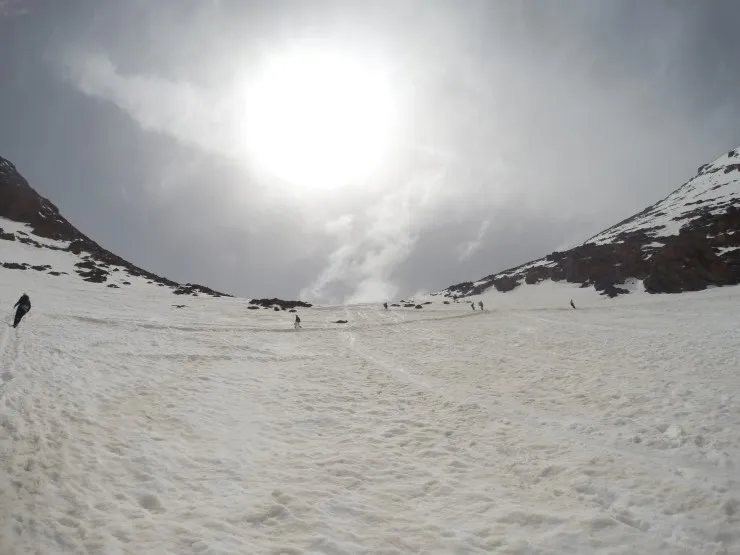 . 쉘터에서 정상까지 눈길을 오를 때는 4시간이 걸렸는데, 내려올 때는 썰매를 타고 1시간만에 내려왔습니다. 눈길이라 그런지 미끄럽기도 하고, 걸어서 내려오는데는 무릎이 너무나 아팠습니다. 그래서 의도적으로 미끄러 지는 듯 내려와야 했는데, 이미 사람들이 눈썰매장을 만들어 두었습니다. 엉덩이가 다 젖었지만 그래도 하산은 너무나 즐거웠던 시간이었습니다.