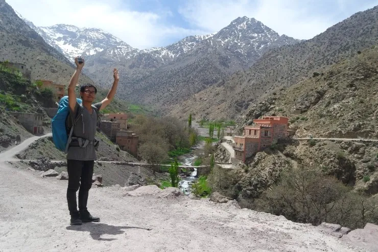 공용 택시를 타고, 산 입구에 해당하는 마을인 임릴(Imlil)에 도착했습니다. 차에 같이 탄 "존"이라는 벨기에 아저씨는 프랑스어를 모로코에서 가르치고 있다고 하십니다. 모로코는 베르베르어, 아랍어, 프랑스어를 주로 쓰거든요. 이 아저씨는 매주 여기 산을 오는 게 취미라고 하시는데, 우리처럼 1박 2일 코스가 아닌 하루에 정상을 찍고 내려온다고 합니다. 나중에 저희가 올라가다가 내려가시는 모습을 봤는데, 뛰어다니시더라고요....ㅋㅋㅋㅋ 대단하신 분