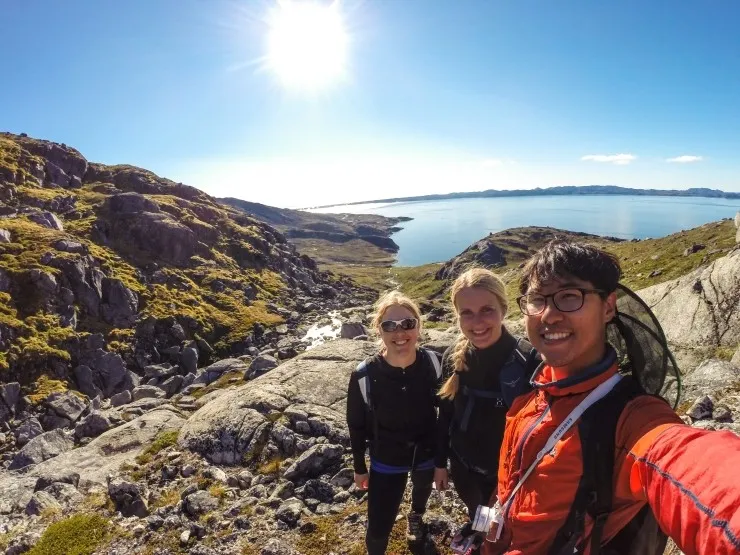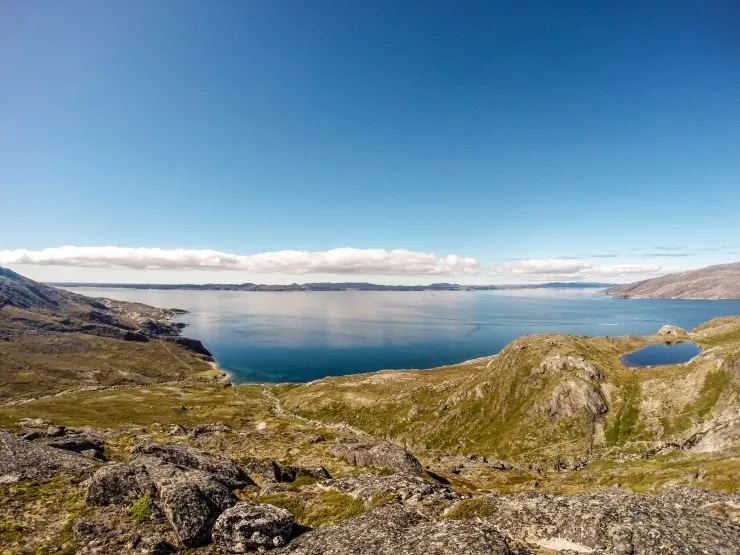 먼저 산에 오르기 전에, 누크를 내려다 볼 수 있는 언덕에 올라가서 한 번 둘러 봤어요. 히야 정말 멋진 풍경이 펼쳐져 있어요. 아아 그린란드는요 온통 바위산이에요.. 진짜 이런 곳에서는 농사 짓기 힘든게, 땅을 개간하려고 보면, 계속 바위가 나오는 그런 바위산이에요. 덕분에 저도 열심히 등산하는 기분이었어요. 그린란드 2주 내내 왜 이리 힘들었나 생각해보면... 지형이 평평한 게 아니라 높낮이