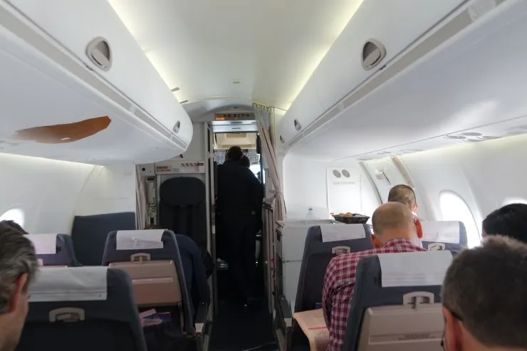 비행기가 25인승 작은 비행기였는데, 제 좌석이 조금 불편한 좌석이었어요. 그 뭐랄까 우리 학생들 수학여행 가면, 고속버스 맨 뒷 줄의 가운데 칸 있죠? 잘 노는 친구들이 앉는 그 자리 ㅋㅋㅋ 테이블도 없어서 기내식으로 샌드위치랑 음료수랑 쿠키랑 나왔는데, 너무 불편해서 앞줄의 빈자리로 이동을 승무원에게 요청했습니다. 그랬더니?!