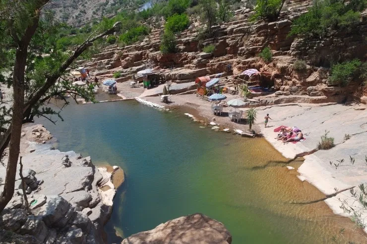 아~ 여기서 되게 웃긴 일이 있었는데, 잔잔하고 깊지 않은 곳은 물이 맑아서 바닥이 다 보이는데요. 제 눈에 흰 빛깔의 조약돌이 눈에 보이는 거에요. 그래서 "뭐지?" 하고 들어올렸는데요.?! 돌이 아니라 껍질을 벗겨 놓은 감자였어요. 제가 "야 여기 이거 흰 돌인 줄 알고 주웠는데 감자야~!!" 그러니까 주위에 있는 모든 사람들이 보며 웃었어요ㅋㅋㅋ 왜냐면 저는 안 보였는데 제 위 쪽으로 한 모로코 아저씨가 타진을 만들고 계셨거든요. 아마 위에서 껍질 벗기다가 떨어뜨리셨나 봐요 ㅋㅋㅋㅋ