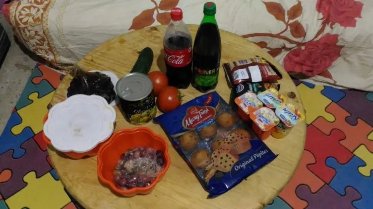 일단 타진을 위한 고기, 올리브, 토마토. 요거트, 과자, 초코렛 그리고 콜라와 사과맛 음료수(모로코 음료수에요!!)