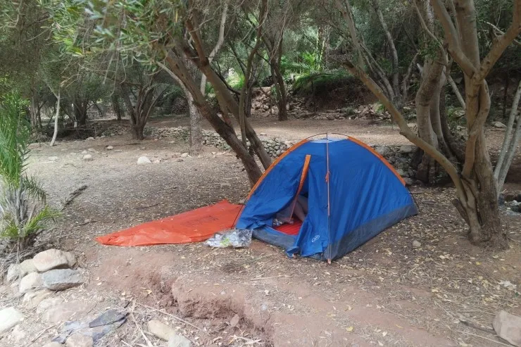 파라다이스 밸리에서는 야영이 금지 되어 있어요. 사유지이기 때문에, 주인들이 개를 데리고 다니며 순찰을 다니는데요. 저녁에 모로코 사람들이 오더니 누군가 개를 데리고 여기에 온다며 잘 수 없다고 하고서는 점점 가까이 들려오는 개소리에 떠났어요. 저도 떠날까 했는데, 텐트 친 거를 풀어 옮기는 것도 귀찮고 그래서, 걸리면 옮기자 하고 냅뒀는데.. 아무도 안 오더라고요 ㅎㅎㅎ