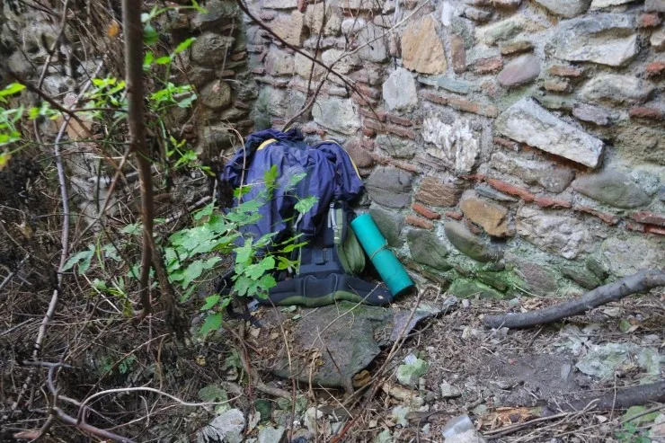 여행자 배낭이 2개나 놓여진 채,
