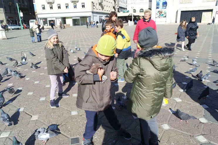 아이들아 지지...비둘기가 얼마나 더러운데..