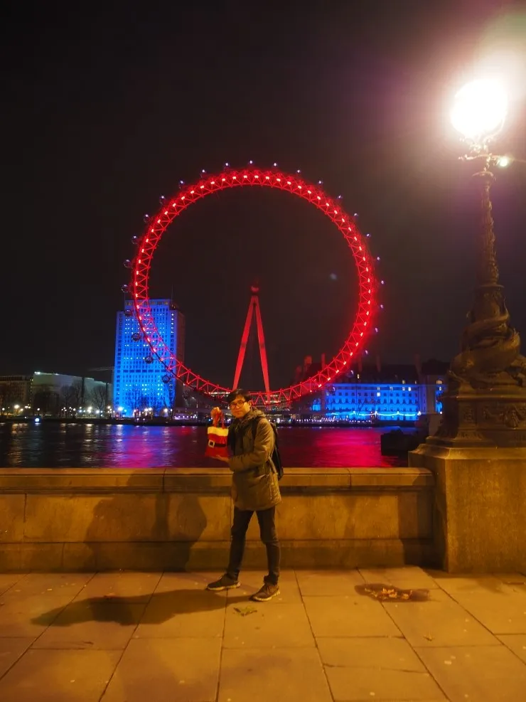 런던 아이(London Eye)입니다. 왜 런던아이가 항상 빨간색 조명을 쓰는 줄 아시나요?? 그것은 바로 스폰서가 코카콜라이기 때문이에요. 항상 빨간색을 유지하다가, New Year's Party를 할 때, 굉장히 크게 불꽃놀이를 하는데요(앞에서 보려면 표도 사야 합니다). 그 때는 초록색, 파란색, 분홍색 등으로 색을 바꿔주기도 해요.