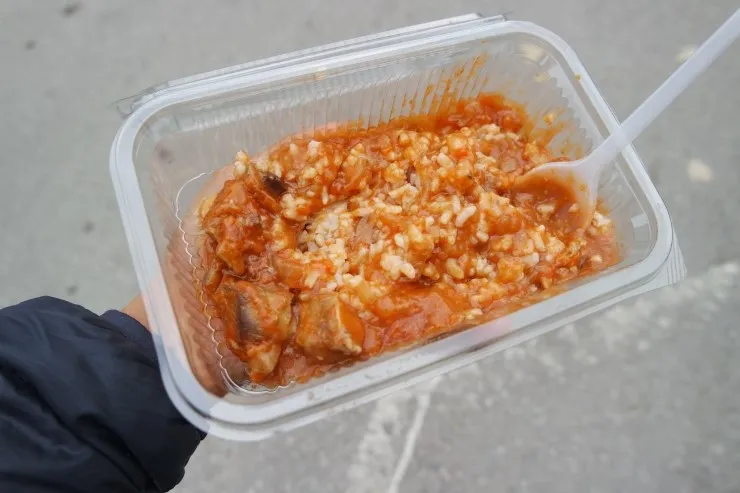 파프리카 가루를 베이스로 한 소스에 밥과 고기 야채를 조린 것 같아요. 생각보다는 맛있었습니다. 사실 맛 없을 수 없는 그런 맛.