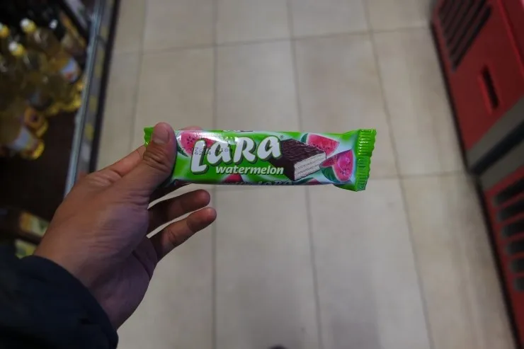 밥을 먹고 나서는, 입가심으로는 수박맛 초콜렛을 먹어봤어요. 슈퍼마켓에서 발견했는데... 저는 이런 것은 꼭 시도해보는 편이에요. 새로운 것, 새로운 맛!! 수박맛이라니!!