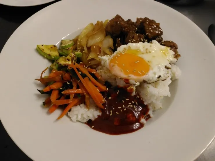 비빔밥 완성!!! 고추장도 있었겠다. 고기, 양파, 당근, 시금치, 계란 등을 해줬어요. 아 이 친구가 참기름도 있어서 오랜만에 고소한 참기름에 밥을 비벼먹었어요. 얼마만인지... 여행하면서 참기름 들고 다니는게 생각보다 번거롭거든요. 새면 냄새가 너무 많이 나서 문제이기도 하고요ㅠㅠ