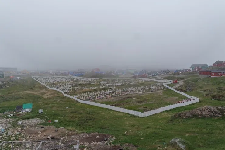 그린란드의 묘지는 이렇게 한 곳에다 모아둡니다. 우리도 그렇긴 한데, 여기는 훨씬 더 장엄해요. 안개가 껴서 그랬던 것일 수도 있고요.