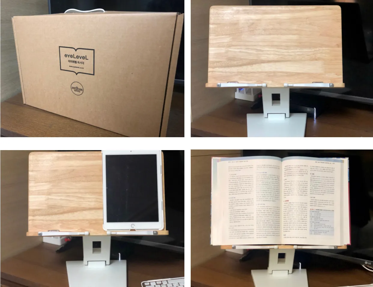 - 독서대 아주 많이 편합니다. 각도를 자유롭게 움직일 수 있어 소파, 책상 어디나 턱하고 올려놓고 내 눈에 맞춰 보시면 좋습니다. 평소보다 읽기 속도도 빠르고 뭔가 좀 자세가 나오는 독서 분위기 연출됩니다.