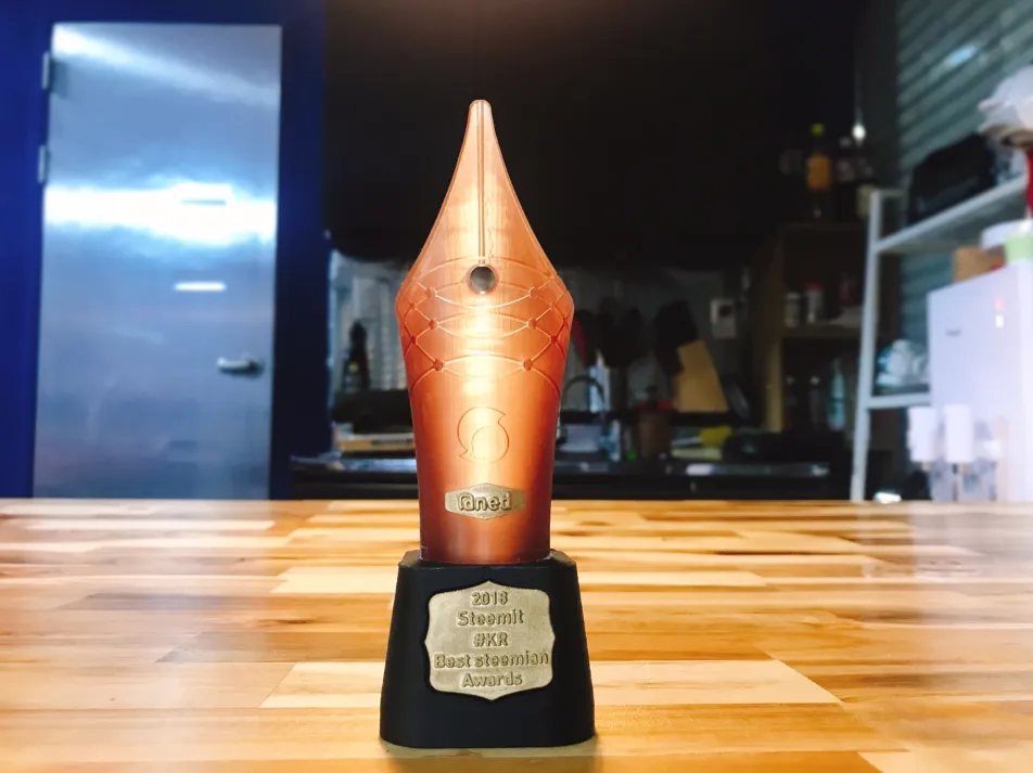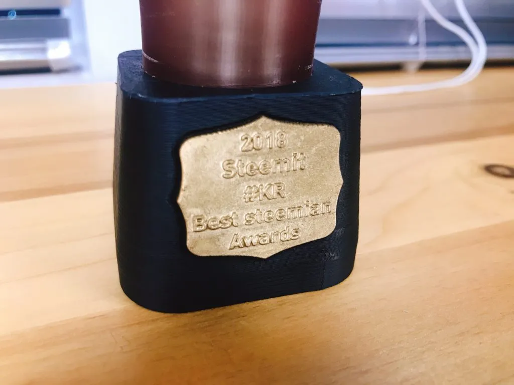 블록체인에서 혁신을 만들어가고 있는 스팀, 스팀잇의 트로피를 제조업에서 혁신을 이루고 있는 3d 프린팅기술로 만든다는 것도 재미있는것 같습니다. 펜촉부분을 전체다 금색으로 스프레이할지 3d 프린팅된 상태 그대로 둘지는 아직 시간이 있으니 좀 더 고민해 봐야겠네요~