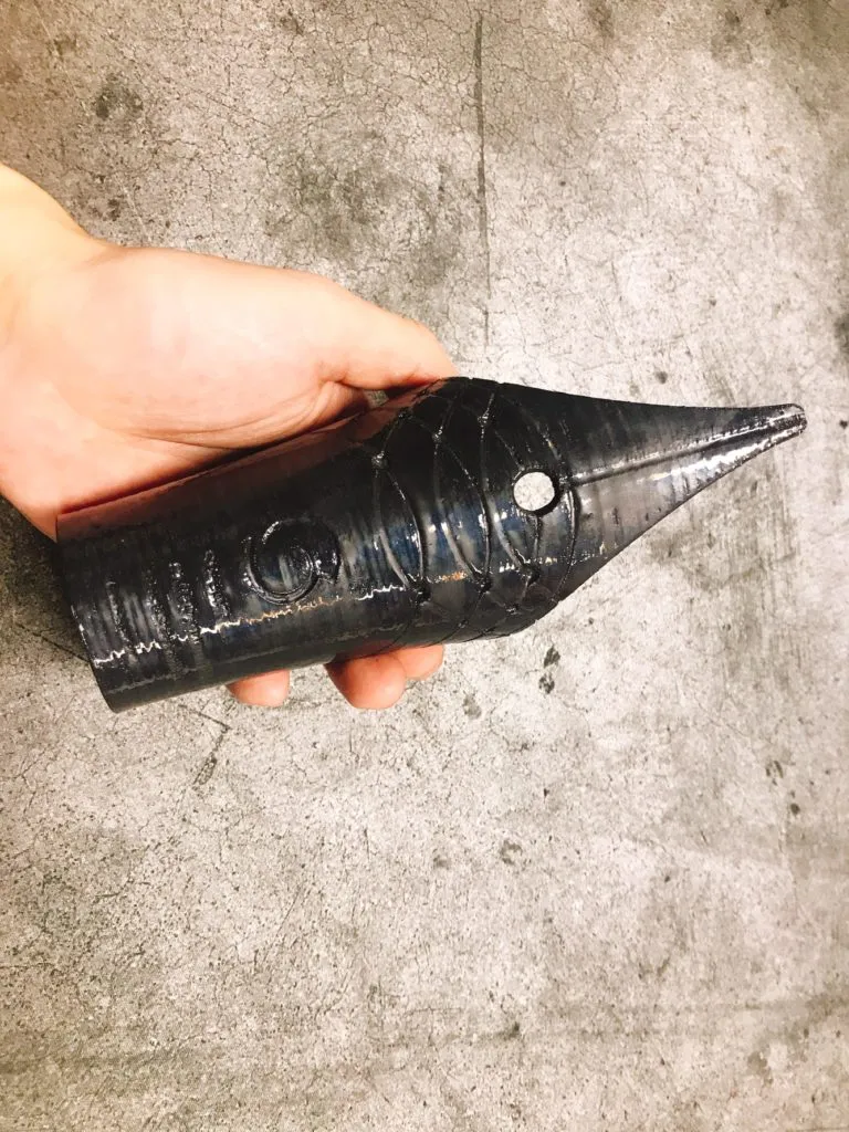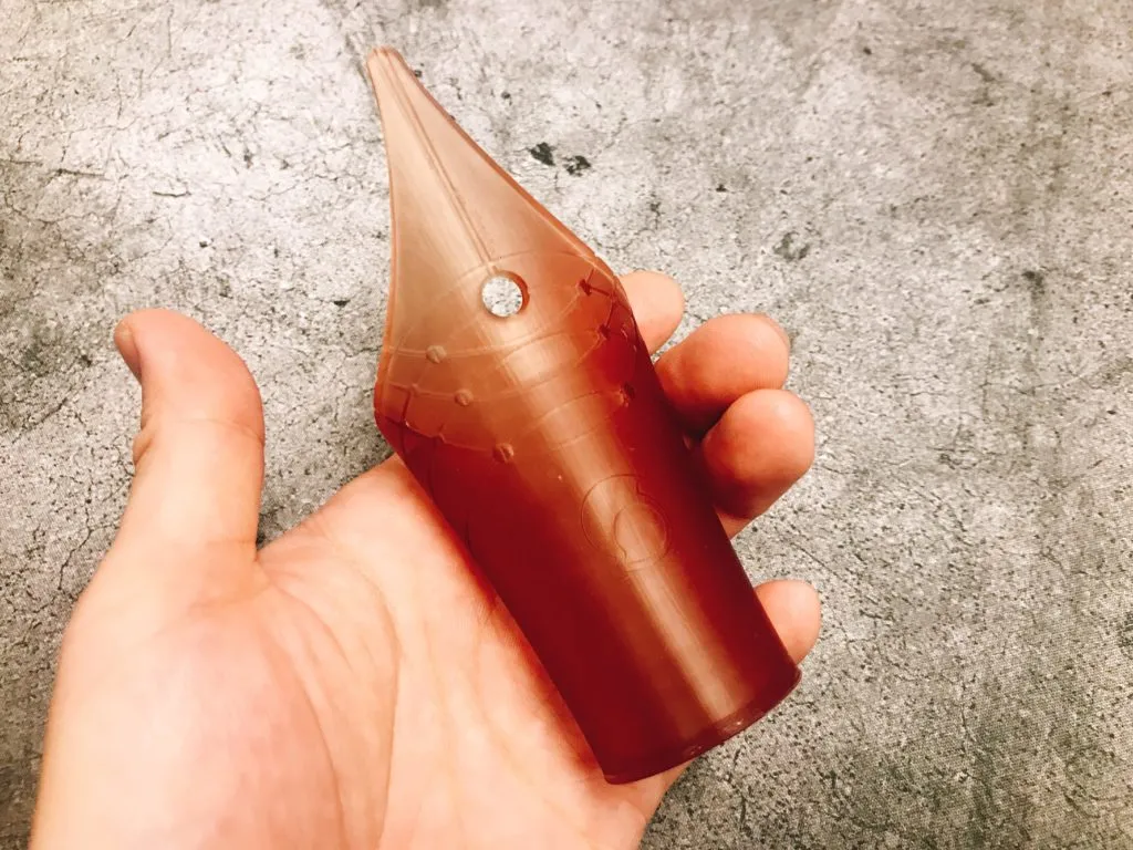 특단의 조치로 디자인을 살짝 변경했어요. 크기를 과감하게 줄이고 새겨넣을 문구를 아랫쪽으로 옮기고 등등.. 그 결과 LCD 프린터로 뽑을 수 있는 사이즈가 되어서 이렇게 깔끔한 펜촉부분을 얻어낼 수 있었습니다 ^^ 잘 나왔쥬~?