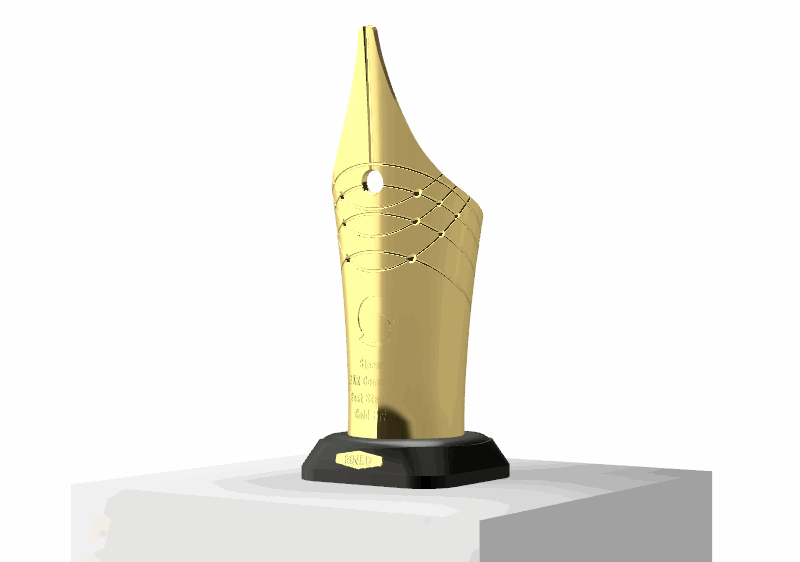 첫번째 트로피 디자인 이었죠? 스팀잇이 글을 쓰는 공간이다 보니 만년필 펜촉이 떠올랐고 그걸 크게 확대하고 새로운 디자인을 넣어서 트로피처럼 완성시켰었습니다. 모델링까지는 다 되어있었기 때문에 이번에 3d프린터로 출력해서 만들기만 하면 됩니다.
