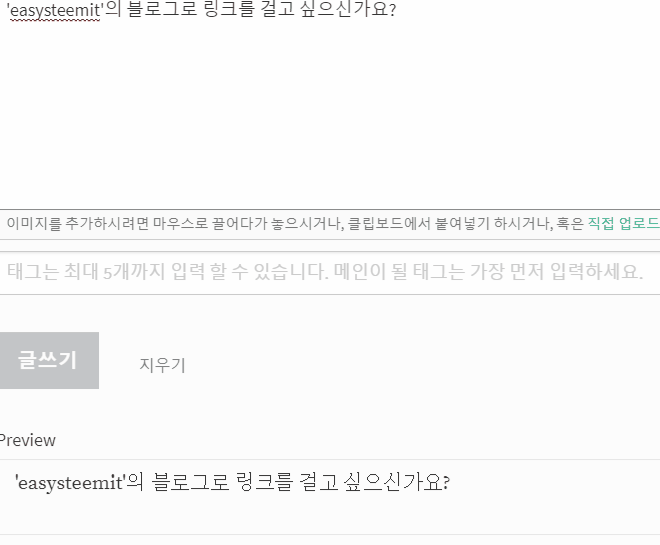 1. 스티밋 ID를 링크를 걸어볼까요?
